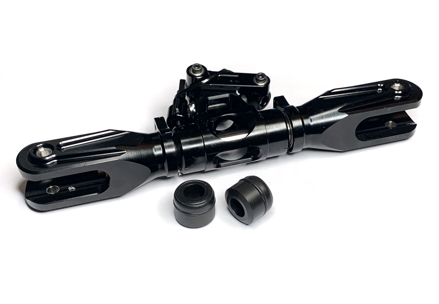 The Time-Proven best Dampeners in existence, the RigidCore™ Magic Dampeners are finally available for other helicopter brands. Using a custom-made non-linear compression plastic this dampener allows you to convert your head to a fully Rigid Head with its amazing upstairs maneuvers and F3N response and virtual elimination of boomstrikes but at the same time it avoids the Rigid Head drawbacks at low head speeds allowing for a supreme hovering experience. It allows you to hover down to an incredible 500 RPM which translates into amazing autos that don’t lose their energy and amazing hovering characteristics. These are the last dampeners you will ever need because they don’t wear out. Try it today and you will love them.
